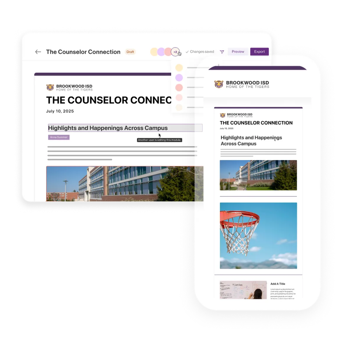 When newsletters are hard to build, they are inconsistently designed, and may not even get sent at all. The new Collaborative Newsletter Builder makes it easy for anyone in your district to create on-brand, professional emails that are aligned to your brand, every time.