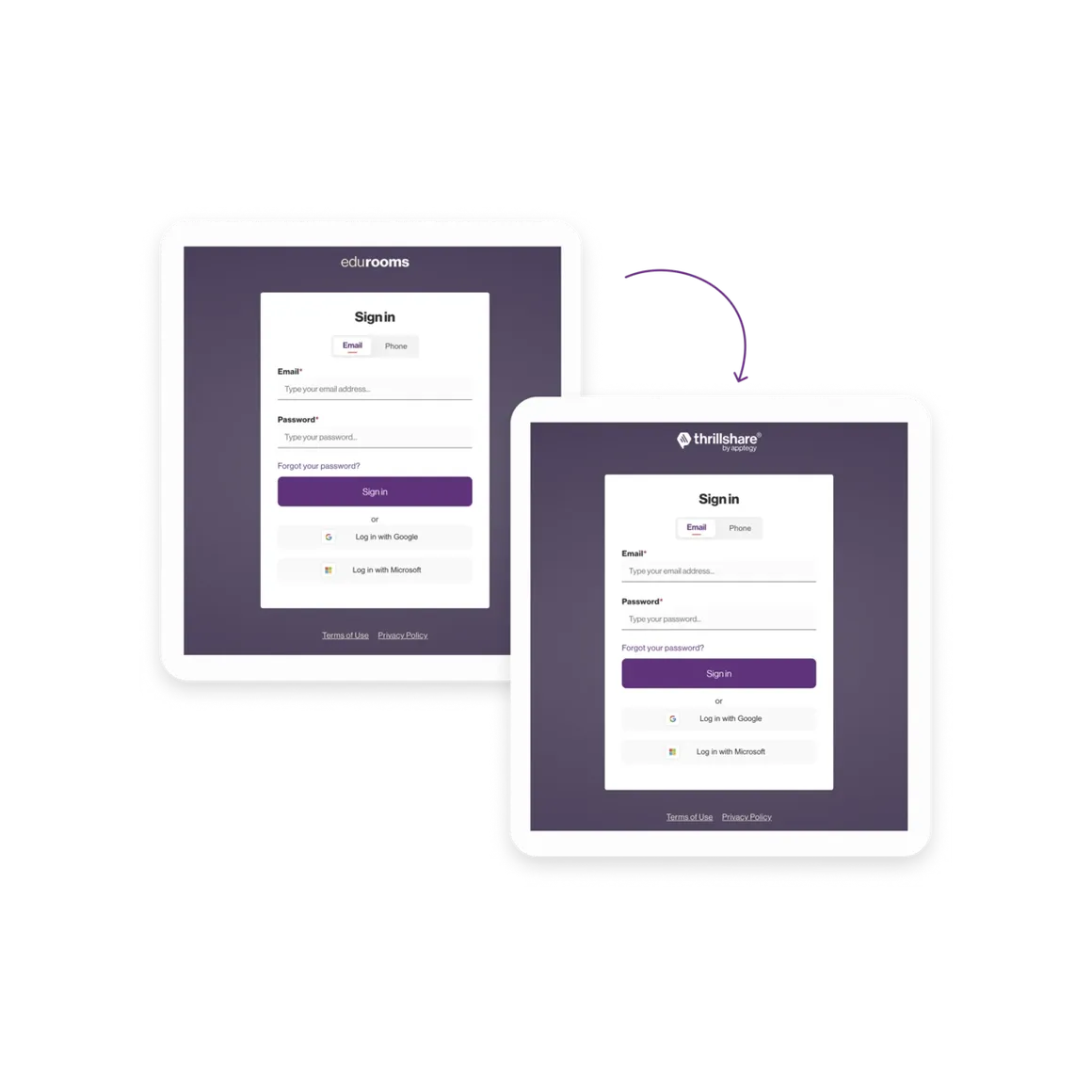 Give all Rooms users, guardians, staff, and students, the same login experience through thrillshare.com.