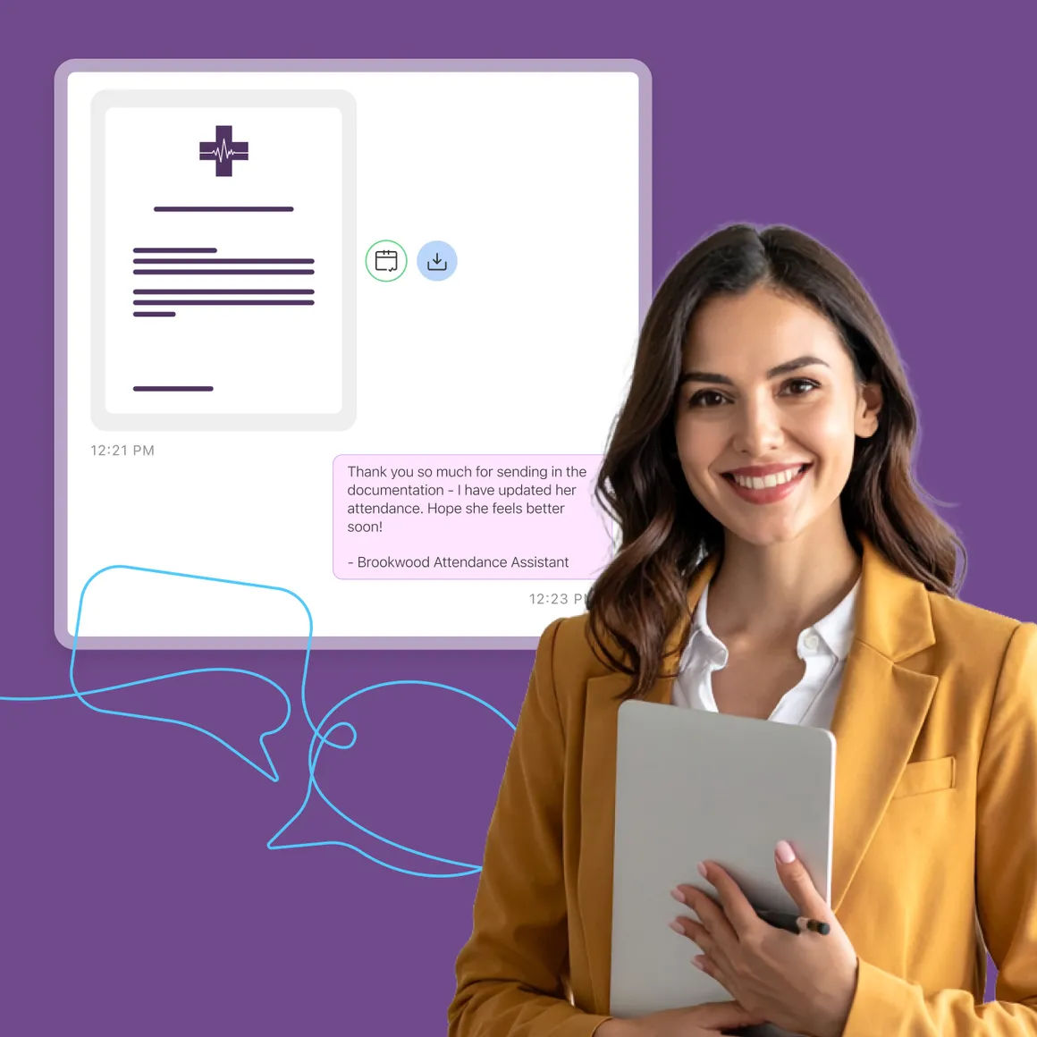 → AI-powered outreach texts families instantly after an absence — in 100+ languages, no staff action needed