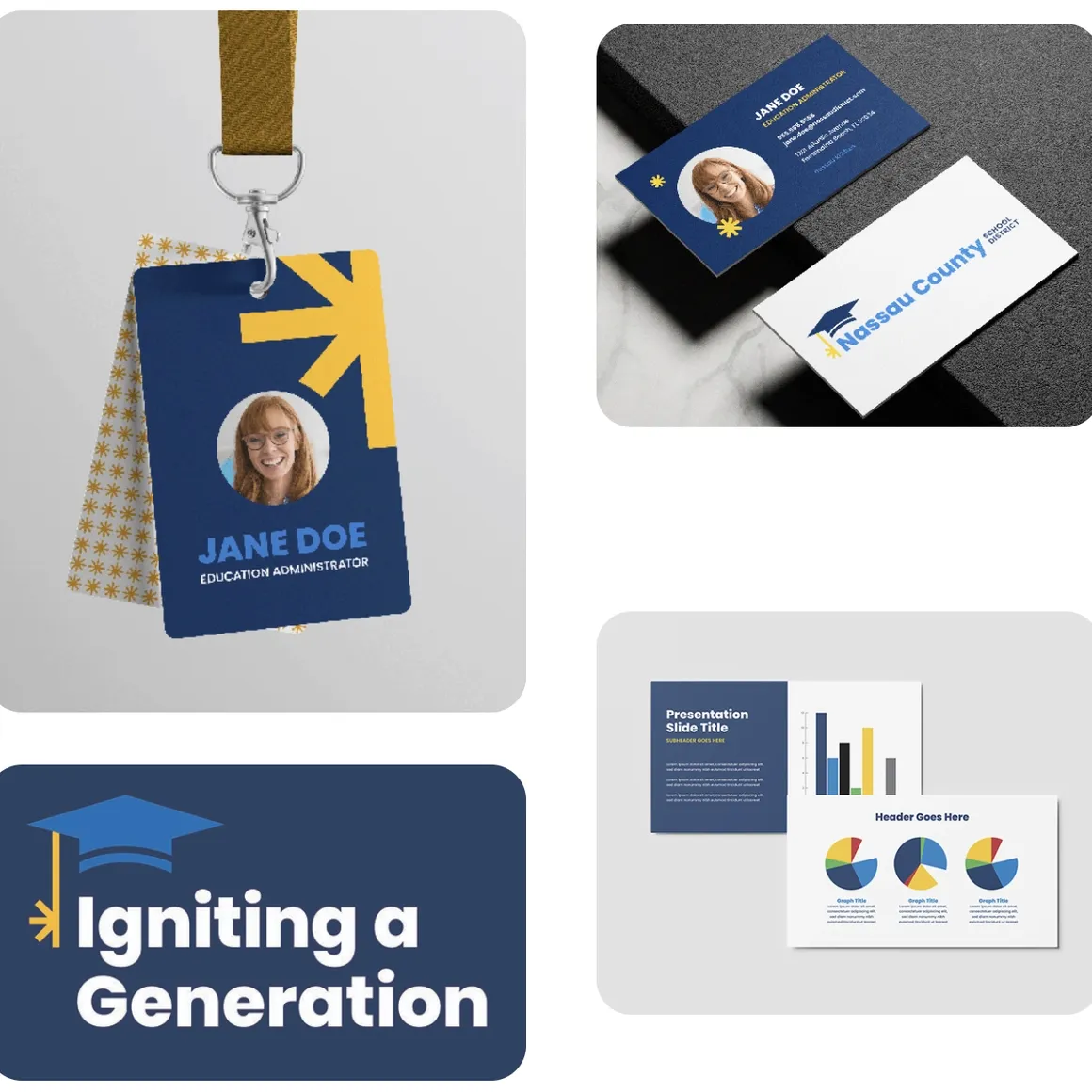 Rhodes Branding partnered with NCSD to lead a full rebranding effort, working closely with the district to ensure the new identity would resonate with students, families, staff, and the broader community. Through brand perception surveys, we gathered insights from across Nassau County, uncovering a consistent theme—“igniting a generation.” This idea captured the district’s unique blend of opportunity, care, and commitment to lifelong learning.