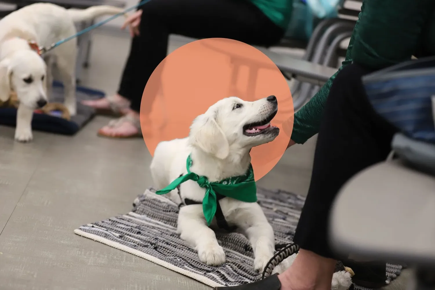 When I got in touch with the owner, eight of the ten expected pups were still available. Within days, eager members of my leadership team volunteered to be handlers. Within four hours of securing those handlers, I had already raised $12,000 from local sponsors to help with the initial costs of purchasing the pups, setting up a working area at each school, and helping with the costs of training. In the end, we actually ended up with nine of the ten from that first litter, an additional English Cream Golden Retriever from an entirely different breeder, a two-year-old Labrador, and a one-year-old Labradoodle. By the first day of school this year, we had 12 pups training to be therapy dogs in our district: one for each school, just as I’d hoped.