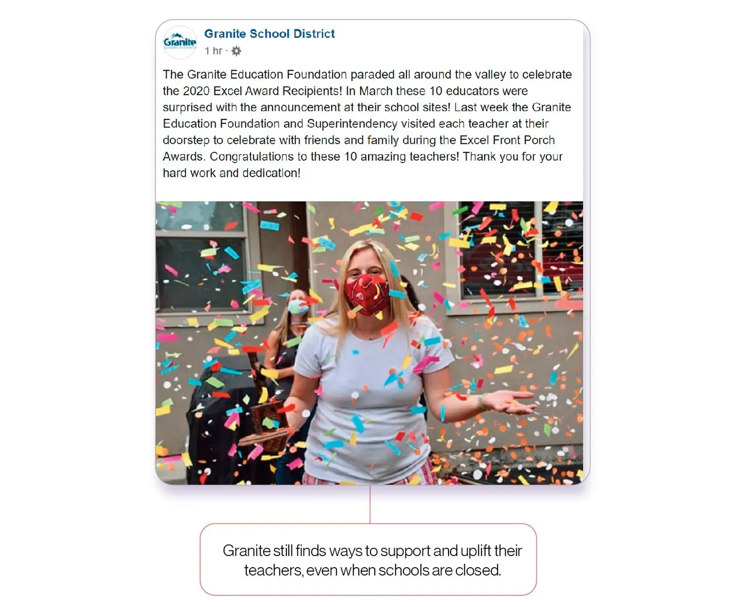 Some years ago, we adopted what we call The Granite Way. We teach the curriculum in instructionally sound ways, measure kids and involve them in their own learning, and have systems in place to catch kids who are falling. That’s just the way we do our business. And over eight or nine years, we’ve really been able to build that culture. We’ve worked to incorporate that into all of our conversations. I’ve heard that some of the schools have betting pools on how many times the term Granite Way will be used in a faculty meeting.