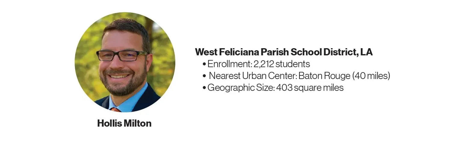 While West Feliciana Parish School District has a medium-sized student population with over 2,000 students, the district is spread out across rural Louisiana. After being diagnosed and hospitalized with the coronavirus in March, Superintendent Hollis Milton made it a priority to ensure the return to school was as safe as possible. One out of every five West Feliciana students are learning from home, while 80% of students chose face-to-face instruction. All students, regardless of their choice, participate in remote learning every Wednesday.