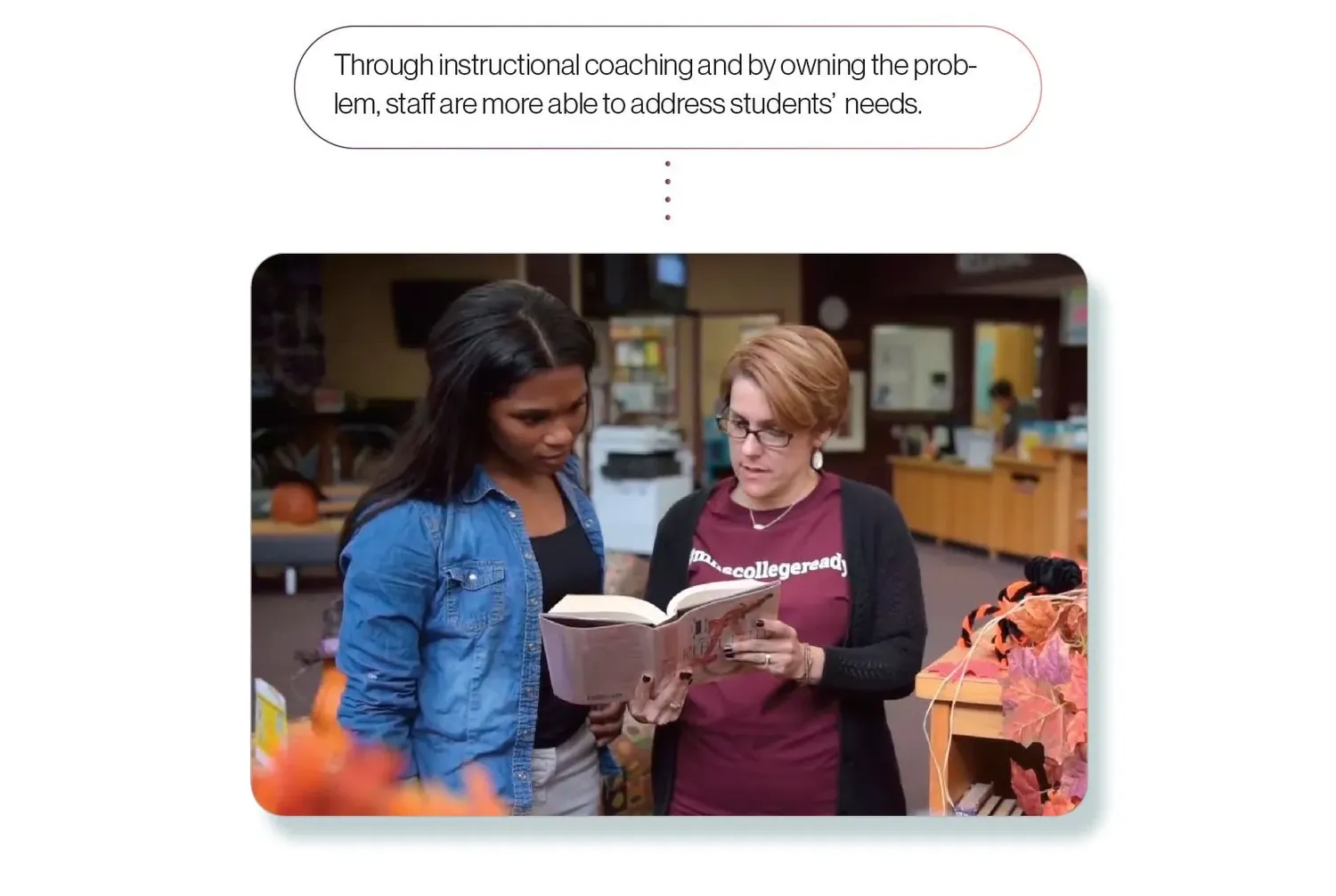 To make sure teachers understood the need, Vroonland gave them time to investigate the issue. “Instead of bringing a specific problem to teachers, we actually had them do research for two months,” he says. “Then, teachers presented to administrators why we weren’t getting kids to that third-grade reading level. Doing that got them to own the problem. And once they owned the problem, they could own the solution.”